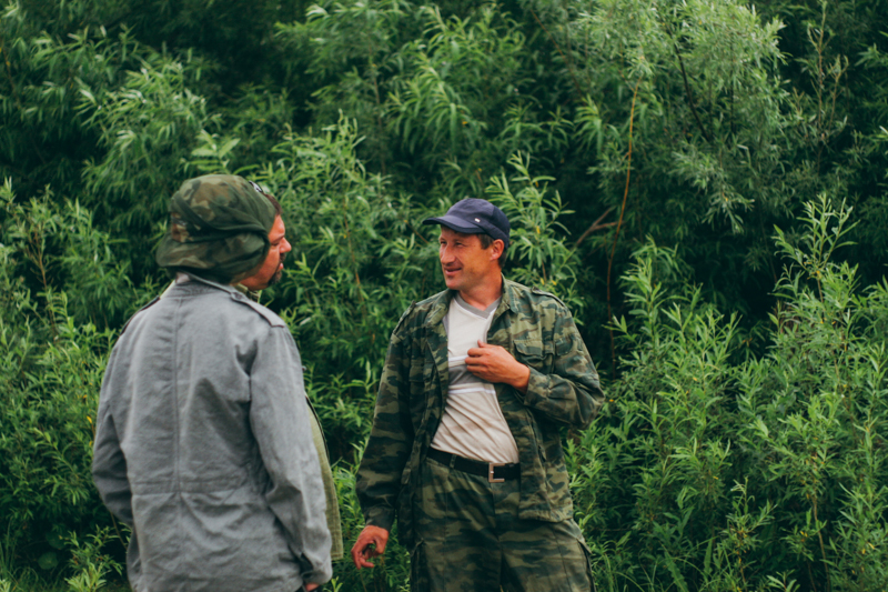 Wania, u którego spaliśmy daje nam wiaderka - trzeba wylać wodę z motorówki. Nie czuję się z tym wspaniale, zwłaszcza po nieprzespanej nocy, ale nie pozostaje nam nic innego tylko zrobić co trzeba. Schodzimy z Michałem po skarpie nad rzekę i wylewamy i wylewamy i wylewamy. Podnoszę głowę, na szczycie skarpy stoi nasz gospodarz z dubeltówką przerzuconą przez ramię. Serce skoczyło mi do gardła. Nie będzie nadużyciem, jeśli powiem, co wtedy pomyślałem. A pomyślałem najgłośniej jak się da myśleć: “o kurwa!”. Facet powoli schodzi po skarpie, a za nim, jak gdyby nigdy nic Tata. W ciężkim szoku przerywam pracę i obserwuję co się dzieje. Co on teraz zrobi? Wyceluje w nas, czy co? To pierwszy raz, kiedy mamy podczas tej wyprawy kontakt z bronią. Sam za bardzo nie jestem za bardzo oswojony z pistoletami czy strzelbami. Mężczyźni podchodzą coraz bliżej. Uspokajająco działa na mnie fakt, że Tata jest cały i zdrowy i nie wygląda na zmartwionego. Gdy są już trochę bliżej, krzyczy do nas: “spokojnie panowie, on jest kłusownikiem - to jego narzędzie pracy. Poluje w tajdze a potem wymienia mięso i skóry na różne towary”. Serce nadal bije mi tak jakbym przeżywał katastrofę lotniczą, ale czuję się lepiej. Po chwili dostaję do ręki tą dubeltówkę. Niestety jest tylko jeden nabój, ale mogę sobie strzelić, jeśli chcę. Bez zastanowienia celuję w beczkę na wodzie i wypalam.