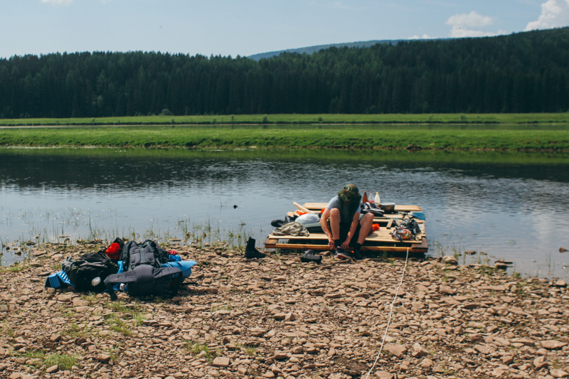 Pływanie w tak czystej wodzie to sama przyjemność. Za zakrętem rzeki dostrzegamy domy - to Ust-Iłga (ros. Усть-Илга). Przyjdzie nam się zmierzyć z sporym odcinkiem na płyciźnie, a wtedy schodzimy z tratwy i ciągniemy ją ostrożnie po powierzchni. Naszym wybawieniem są piankowe buty, pożyczone od przyjaciela, który jest nurkiem. I tak dobijamy do kolejnego brzegu.