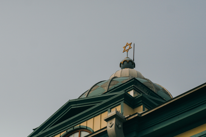 Włóczymy się dalej po mieście pełnym kontrastów. Trafiamy na synagogę - pękającą w szwach, obskurną. Postanawiamy wejść do środka (nigdy nie byłem w synagodze). Wewnątrz luksus. Ochrona przy wejściu, dostajemy zapasowe Jarmułki. Na ścianie półka wyłożona egzemplarzami “Tory”. Kryształowe żyrandole zwisają z sufitu, ławki obite materiałem w kolorze głębokiej czerwieni. Na ścianach czarne płótna z złotymi napisami po hebrajsku. Oglądamy i wracamy na ulicę.